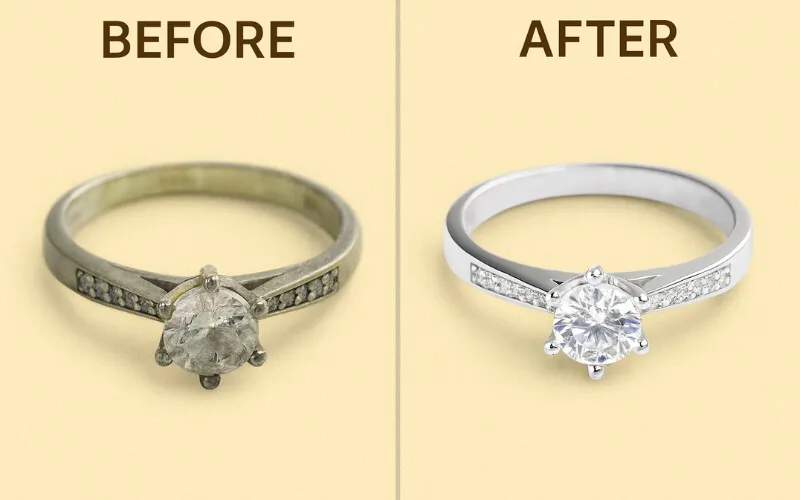 Năm 2026, chúng tôi bắt đầu áp dụng lớp phủ Nano gốm siêu mỏng sau khi xử lý nhẫn cưới bị xỉn màu.
