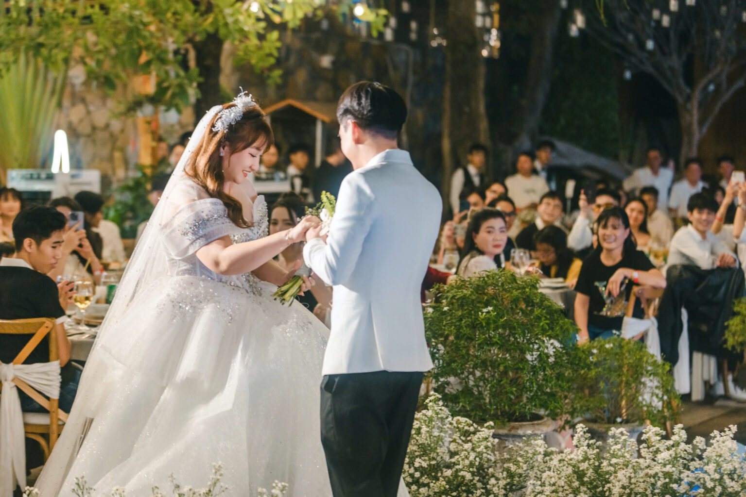Một cô dâu từng hủy concept luxury ballroom để tổ chức tiệc trong sân nhà – nơi cô từng lớn lên. Không hoành tráng, nhưng ấm đến mức mọi người đều rơi nước mắt.
