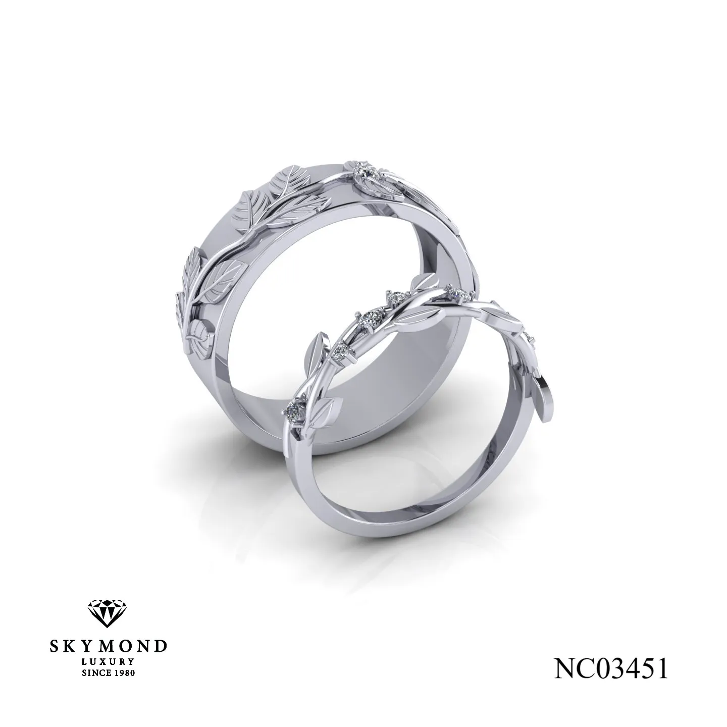 Tại những thương hiệu như Skymond Luxury, các mẫu nhẫn sử dụng công nghệ CNC thường có độ sắc nét và phản chiếu ánh sáng cực tốt dù không đính nhiều đá. Các đường cắt kim cương giả lập trên thân nhẫn tạo hiệu ứng lấp lánh như đang đeo hàng chục viên kim cương tấm, giúp bạn có cặp nhẫn cưới đẹp dưới 15 triệu mà vẫn vô cùng rực rỡ.