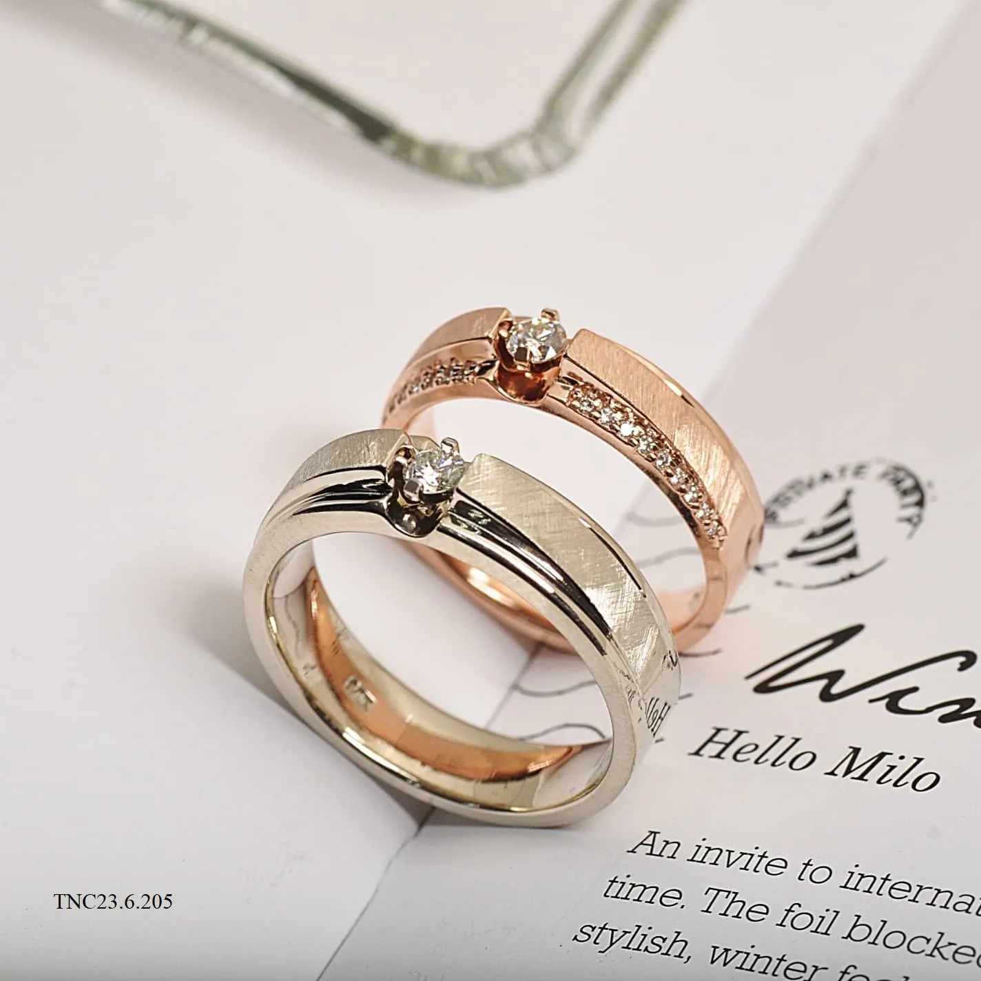 - Thiết kế độc bản (Bespoke): Bạn có thể kể lại câu chuyện những ngày gian khó, những dấu mốc quan trọng để Skymond hiện thực hóa lên đôi nhẫn. Chúng tôi cung cấp dịch vụ khắc vân tay, khắc lời nhắn bí mật bên trong lòng nhẫn để tạo nên sự độc nhất.