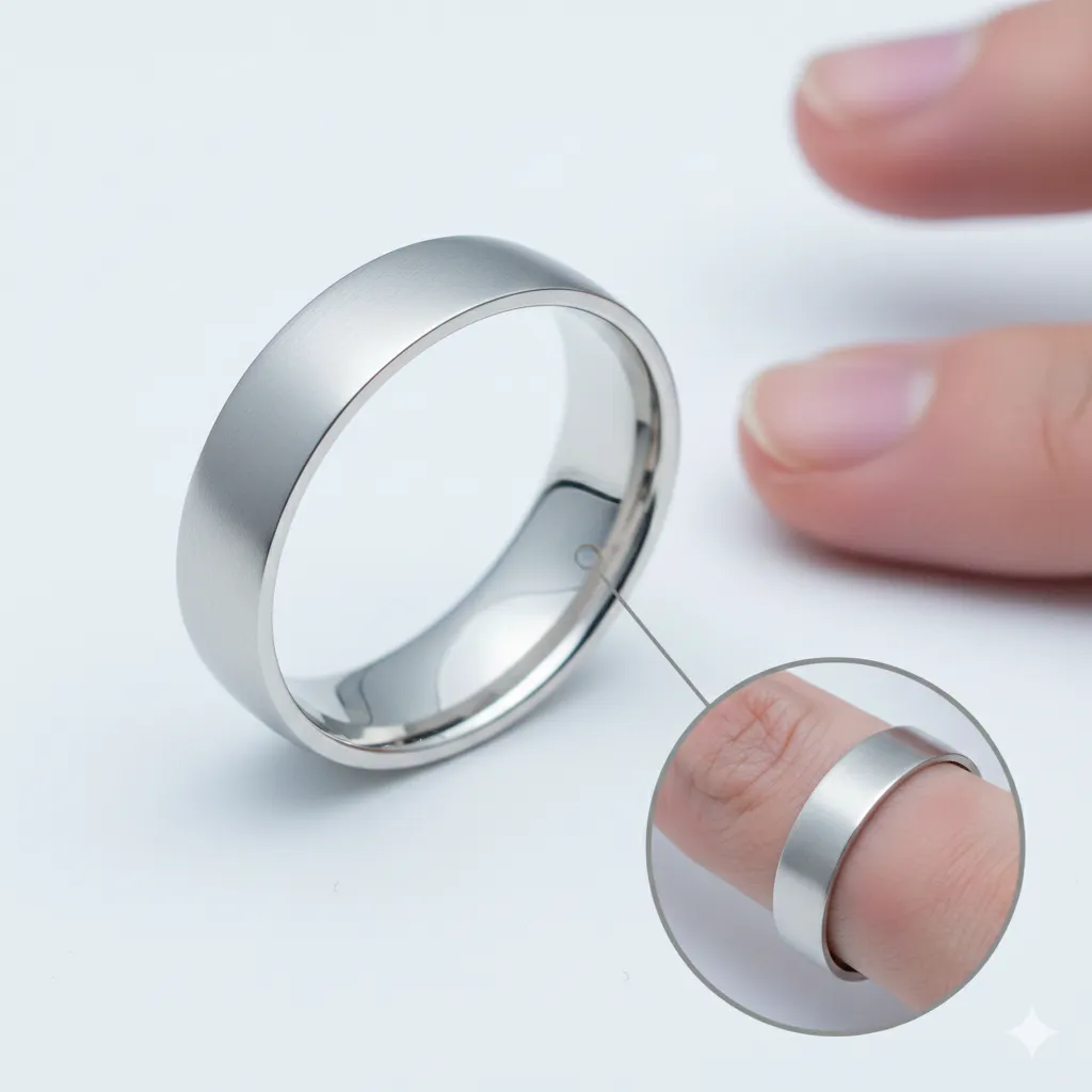 - Khó đeo và tháo: Lòng nhẫn phẳng tạo ra ma sát lớn, khiến việc đưa nhẫn qua khớp ngón tay trở nên khó khăn.