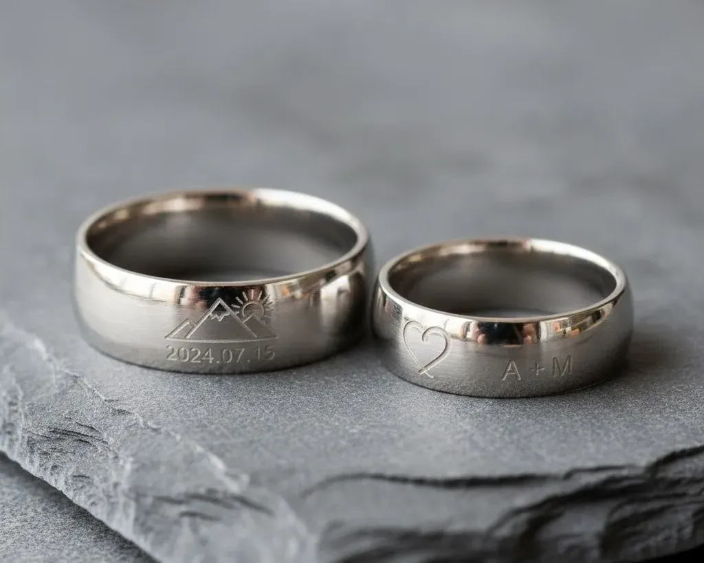 Bạn muốn khắc tên, ngày kỷ niệm hay một ký hiệu riêng vào lòng nhẫn bo tròn? Chúng tôi có dịch vụ thiết kế logo riêng cho cặp đôi để khắc sâu vào lòng nhẫn mà không hề ảnh hưởng đến độ thoải mái khi đeo. Mọi yêu cầu làm huy hiệu cài áo hay cá nhân hóa trang sức đều được Skymond đáp ứng với tiêu chuẩn khắt khe nhất.