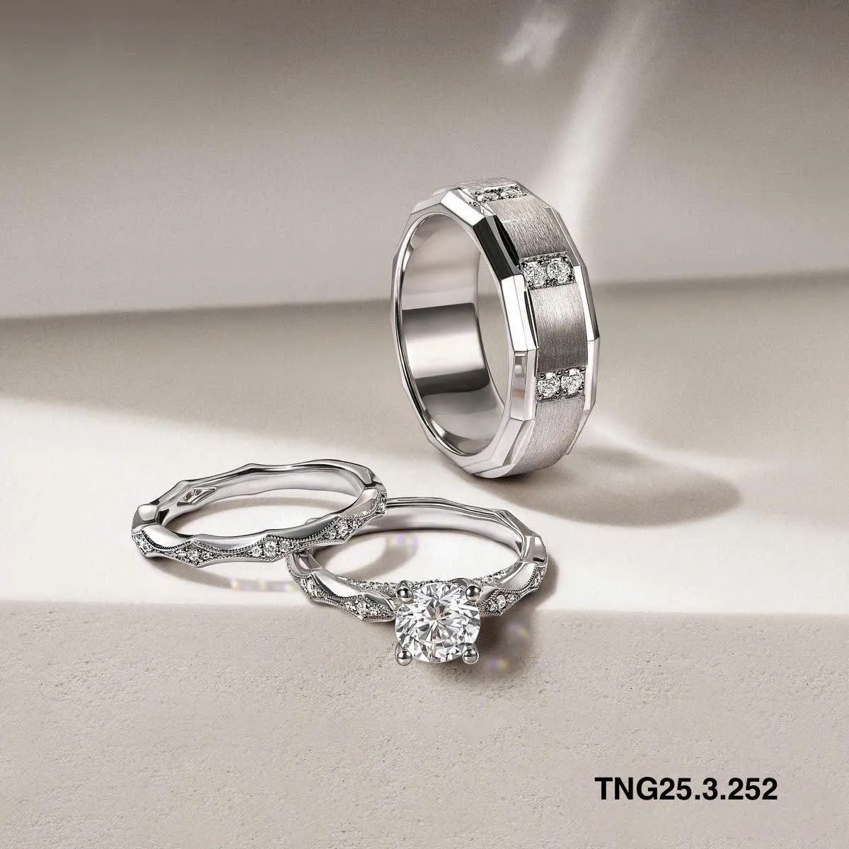 - Lý do lựa chọn: Phù hợp với những cô dâu muốn sự lộng lẫy nhưng vẫn giữ được nét thanh thoát. Đây là mẫu nhẫn cưới platin mới nhất kết hợp hoàn hảo giữa kỹ thuật kim hoàn thủ công và công nghệ 3D.