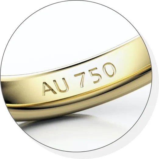 Mỗi chiếc nhẫn cưới vàng Ý 750 chuẩn phải có ký hiệu "750" hoặc "AU750" sắc nét trong lòng nhẫn. Một số dòng nhập khẩu trực tiếp từ Ý còn có ký hiệu mã số xưởng sản xuất (ví dụ: 1 AR đại diện cho xưởng tại Arezzo).